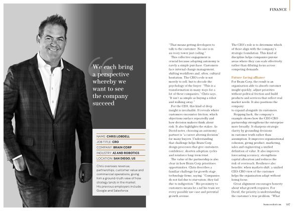 NAME: CHRIS LOBDELL JOB TITLE: CRO COMPANY: BRAIN CORP INDUSTRY: AI AND ROBOTICS LOCATION: SAN DIEGO, US